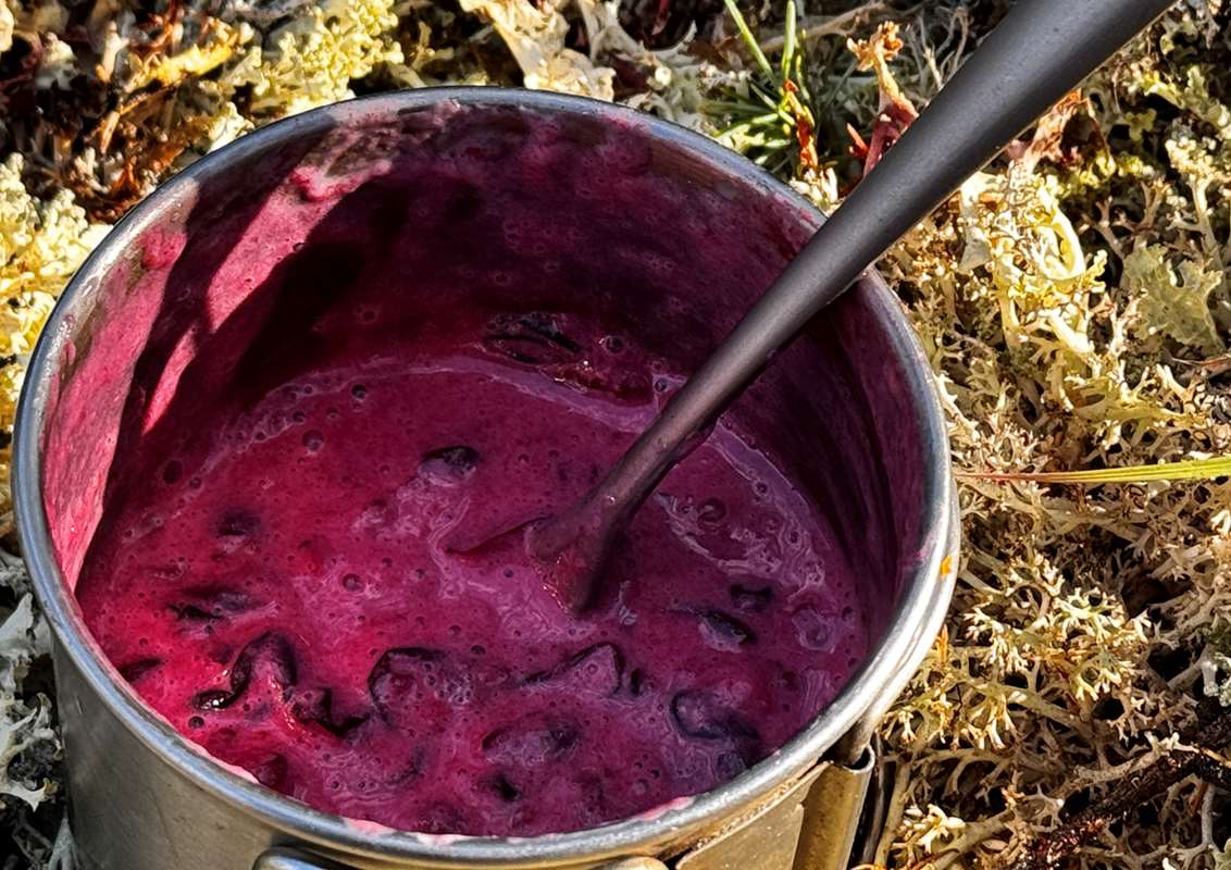 Иногда со мной в походы идут любители сладкого. Поэтому специально для них припасён простейший рецепт, для которого понадобятся: кружка или сразу небольшая кастрюлька, брусника (250 граммов на 4 человек), сгущёнка (по вкусу, я кладу две столовые ложки на 100 граммов ягод), сахар (по вкусу, я кладу одну столовую ложку на 100 граммов брусники).