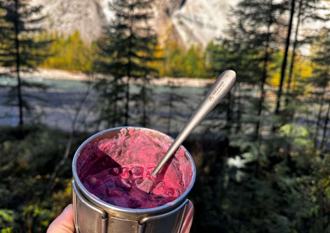 Для того чтобы походный десерт получился нежным и вкусным, необходимо, чтобы ягоды, которые вы взяли, были спелыми и размороженными. Толочь в кружке или походной кастрюльке можно прямо ложкой, но можно взять и специальную мялку.