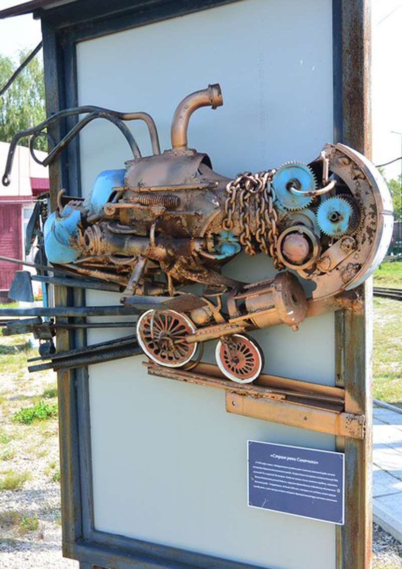Здесь воскресный поезд стоит полчаса. Вполне достаточно, чтобы прокатиться на ручной дрезине туда-сюда, сбегать через скверик в магазин (чай-то кончился) за напитками и закусками, полюбоваться классными скульптурами из всяких железных деталей, почитать про историю дороги на плакатиках.