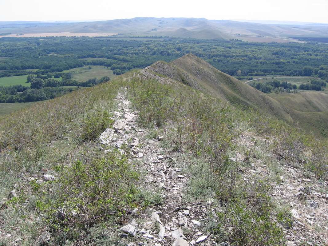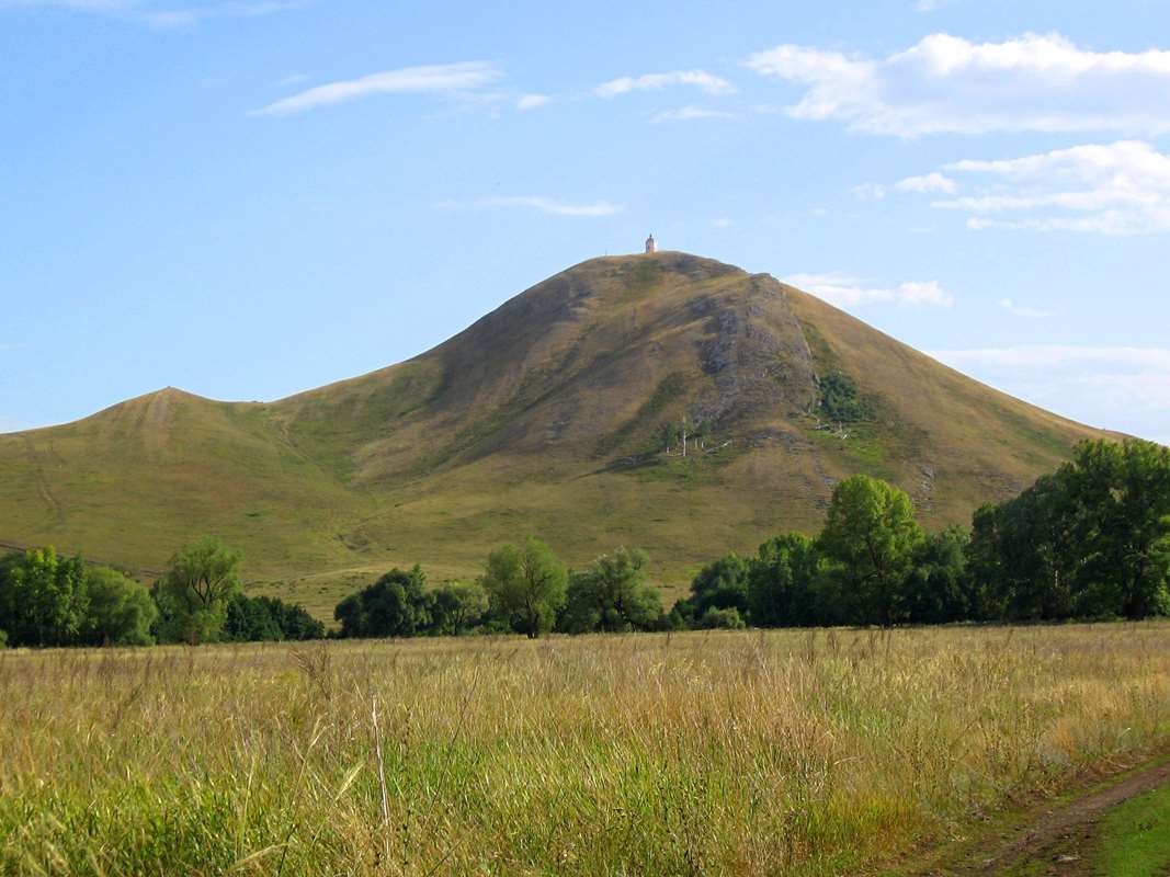 Подъём на гору крут, но наверху можно передохнуть на скамейках, расставленных по краю склона. Здесь царит атмосфера спокойствия, сотканная из красивых видов и ласкового ветерка. Вдали виднеются остальные шишки-холмы и небольшое село Андреевка, основанное в 1780-х годах.