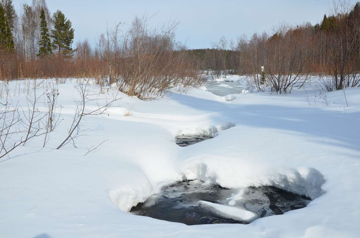 Снег на утоптанных тропинках становится мягким, как пластилин, и говорливым. «Хруп-хруп-хруп» слышится при каждом шаге. Уже не застывшая вода, снег и лёд, царствуют на заснеженных просторах, а живая, игривая, но пока ещё скромная водица появляется в лесах и в полях. И эта первая, пока малозаметная влага через несколько дней обретёт силу необычайную. А шум повсеместных водных потоков и величие бескрайних разливов воды удивят этот мир.