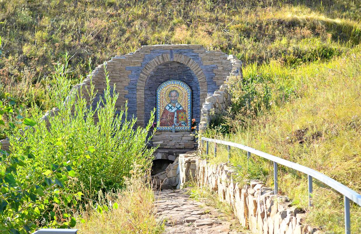 Андреевские шишки получили своё название за причудливые формы. Эти пять холмов растянулись на несколько километров. Мы выбрали Часовную гору, на вершине которой одиноко белеет небольшая часовня. Первый отрезок пути привёл нас к Свято-Андреевскому роднику, расположенному у подножия горы, на месте разрушенной часовни Святого Николая. Освящённый и со вкусом обустроенный родник дарит прохладную, живительную воду в окружении степных просторов.