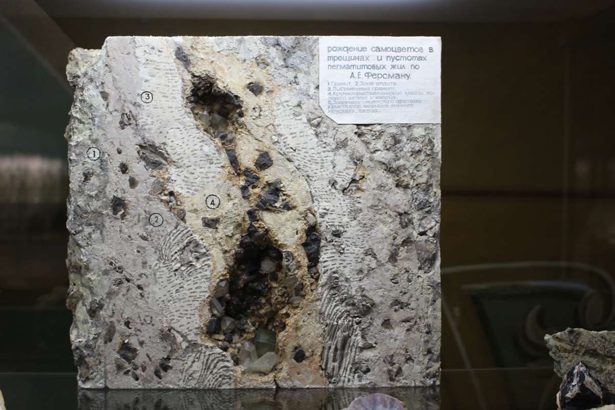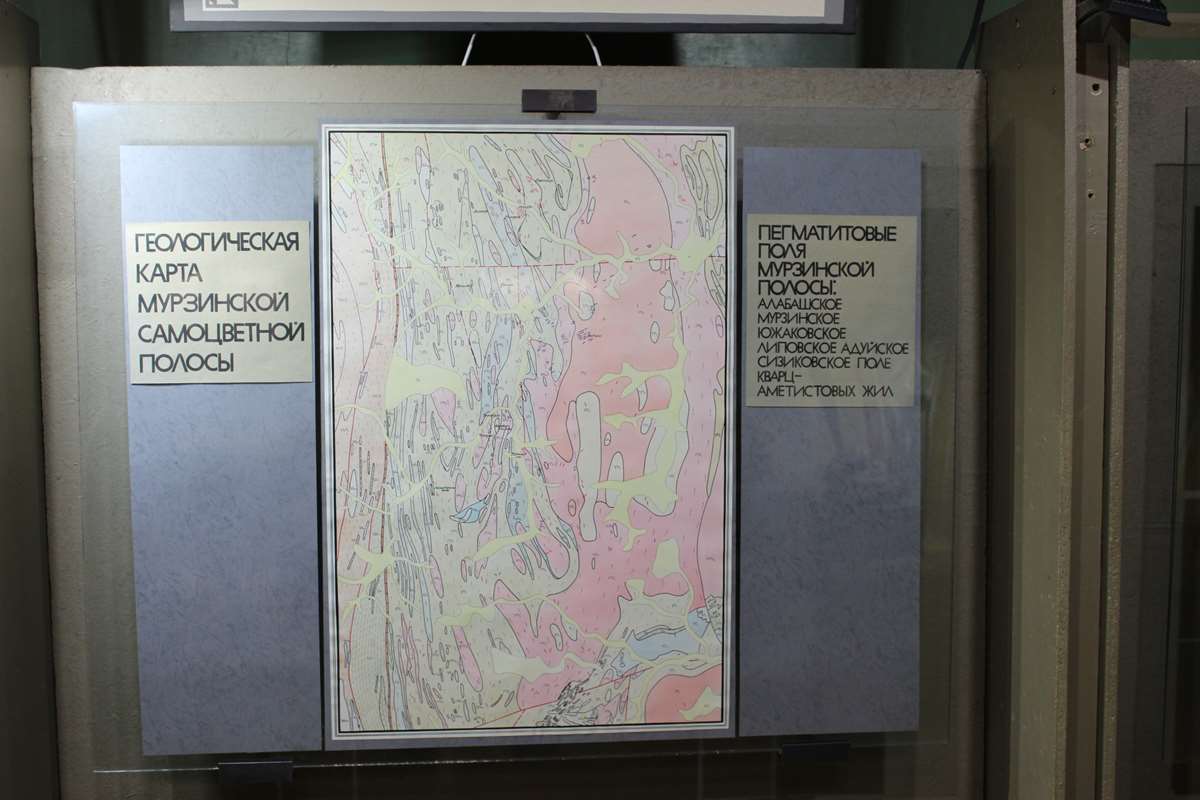 Почему же эти места дали такое количество природных самоцветов? С точки зрения современной науки, время образования месторождений около 250–350 миллионов лет, а место – гранитные магмы. Пока очаг магм медленно остывал, образовывались трещины, в которые «затекали» и остатки магмы, и пары воды, и другие вещества. Сама магма застывала от периферии трещины к середине, возникали пегматитовые жилы. А в них образовывались пустоты-занорыши, это и есть родина самоцветов, то есть места возникновения кристаллов. Стены пустот состоят из кристаллов дымчатого кварца, полевого шпата и слюды, в них и врастают турмалины, топазы, бериллы самых разных окрасок. Эти кристаллы постепенно приобретали удивительно совершенные формы и большие размеры. Мокруша, Мыльница, Голодная, Трёхсотенная – знаменитые копи, как таинственные сокровищницы, расположились вокруг Мурзинки. В музее можно увидеть карту, геологический план жил Мокруша и Голодная, результаты работы Нейвинской ГРП.