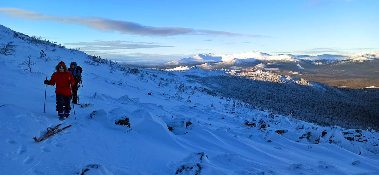 И снегоходчиков, и туристов с лыжами и без. А потому и знаем-то его не так хорошо, как разные «наши» горы, ещё не покрытые нацпарками, где людей всё же поменьше, а значит, и избы посвободнее. В «минус много» избушка в лесу – самое то, что надо… Однако, исходя из философско-педагогических тезисов выше, почему бы не узнать Конжак получше? Тем более, если природа сама подталкивает…