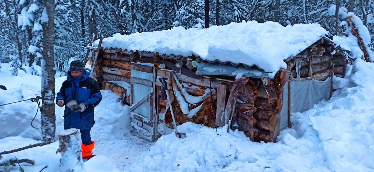 Погода, вы помните, в новый 2025-й год так себе была. Правда, на фоне ночных облаков мы даже северное сияние видели, но на фоне облаков же. И вот тогда мы стихийно для самих себя оказались в неожиданно ухоженной избе неподалеку от турбазы на Лобве.