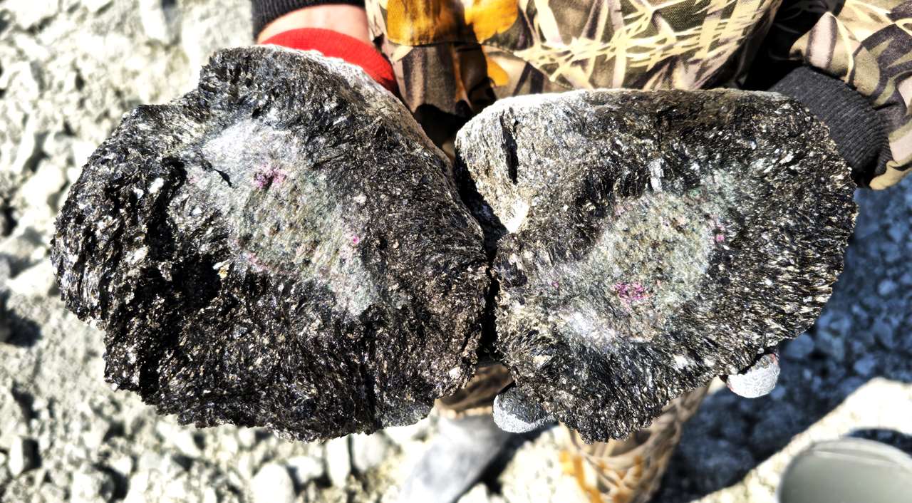 Это были те самые знаменитые образцы, добытые попутно предприятием при проходке штольни в 2022 году, когда пришло сообщение о находке «рубинов» на месторождении «Центральное». Как мы и предполагали, никакого интереса для специалистов предприятия камни не представляли, а только «мешали», поэтому их и «задвинули» подальше от главного входа и любопытных глаз.