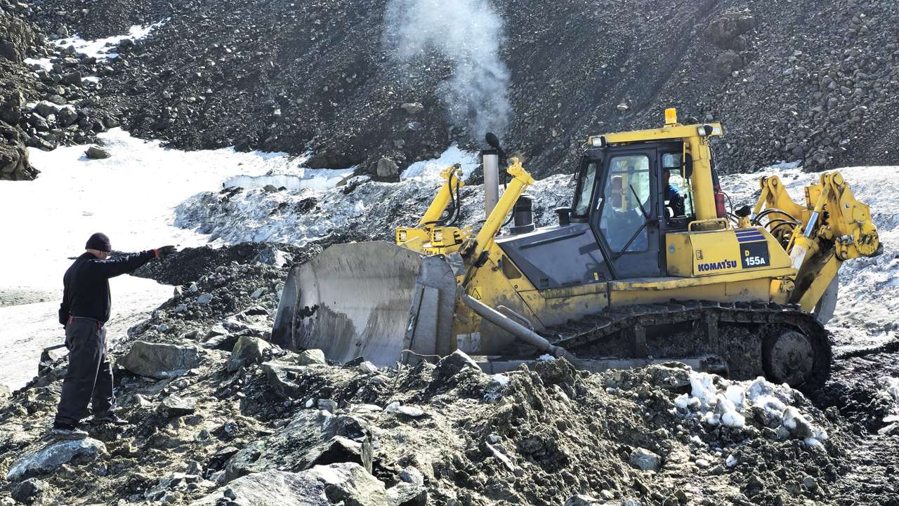 На следующий день (24 июня) у нас планировалась заброска в горы на само месторождение. Но вечером главный инженер предупредил, что сегодня в горах наверху часть дороги перемело свежим снегом и, пока его бульдозеры не почистят, заехать не получится.