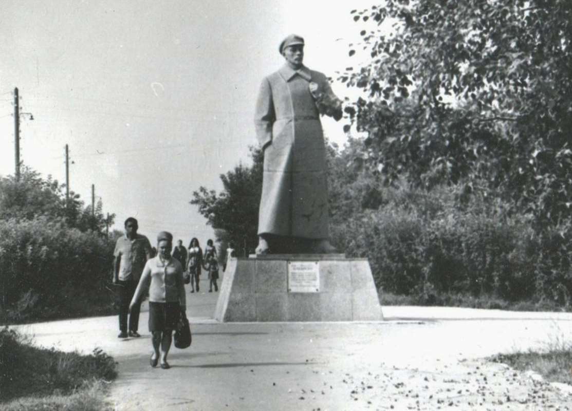Признаюсь, монумент в сквере на улице Чапаева я помню плохо. Однако, судя по архивным фотографиям, бетонный Павел Иванович представал перед земляками и гостями города в образе большевика-пролетария: с усами, в длинном (практически до пят), наглухо застёгнутом пальто, сапогах и фуражке.
