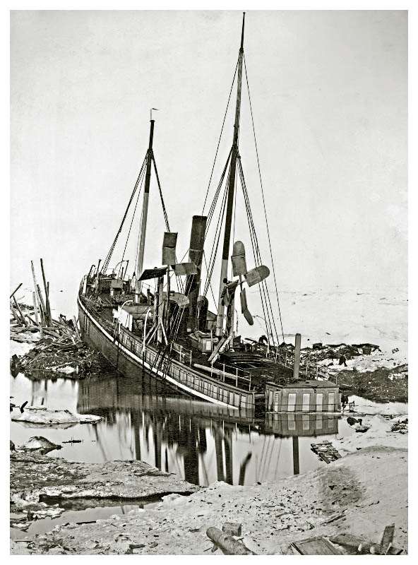 Для освещения мы использовали так называемый «безопасный» парафин; мы сжигали его в лампах, оснащённых так называемыми «солнечными» горелками, которые были подарены М. Виермейером из Амстердама. Поскольку дневной свет проникал в нашу каюту только через несколько маленьких окошек впереди и, кроме того, они были покрыты толстым слоем льда, вскоре наступило время, когда даже в полдень уже было недостаточно хорошо видно, чтобы читать или писать. Однако мы никогда не оставляли лампы гореть на весь день; они гасли в 11 часов утра и снова зажигались только в 2 часа дня». Дрейф судов продолжался без малого год.