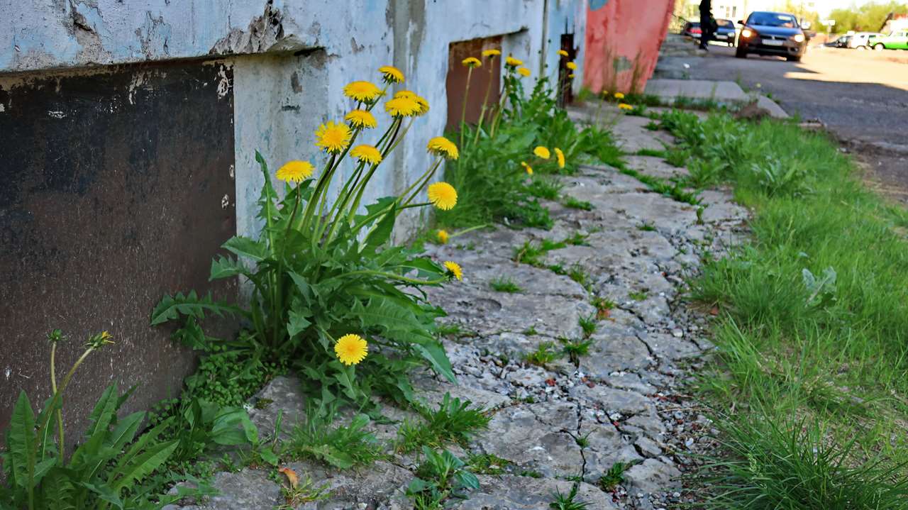Поселившиеся в городских условиях растения широко освоились и прочно закрепились в своих территориях, где растут в самых, казалось бы, не пригодных для жизни местах. Например, клевер люпиновый (Trifolium lupinaster) и луговой, одуванчик, иван-чай, трёхрёберник непахучий, мелкие (тмин обыкновенный) и крупные (борщевик сибирский) зонтичные, подорожник большой (Plantago major) и средний (Plantago media), щавель конский и другие обнаружены в трещинах в бетонном покрытии дорог и дворовых площадей, между цоколями зданий и дорожек вокруг них, выбоинах и промоинах между железобетонными плитами и иных подобных местах . В зависимости от размеров углублений и количества скопившегося в них грунта из попавших семян могут развиваться либо единичные растения (там, где мало грунта), либо целые куртины (где грунта много).