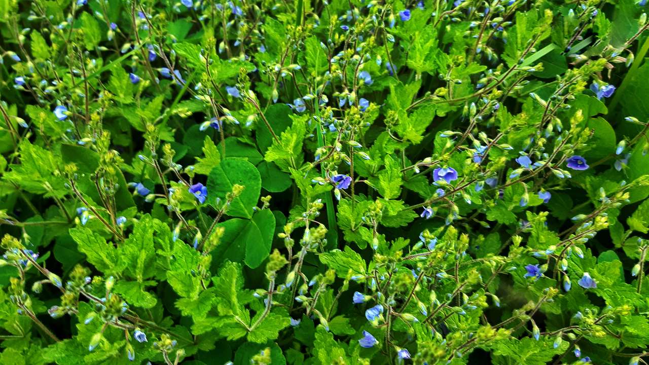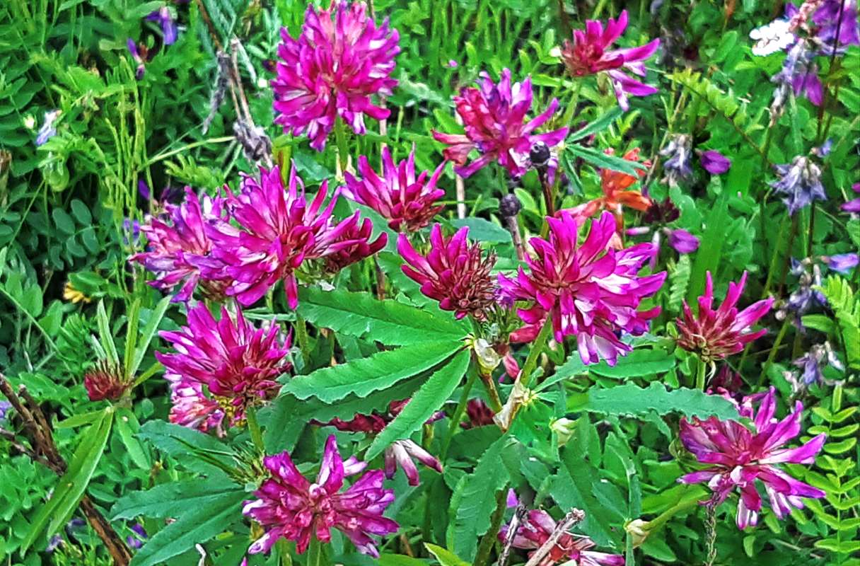 Тут поражают целые «пятна» клевера ползучего и лугового, с тмином и иван-чаем, таволгой вязолистной (Filipendula ulmaria) и многочисленными злаками. В одном из таких урочищ, в «Тиманском овраге», неподалёку от устья ручья Водного обнаружено одно из двух местообитаний редкого вида – вероники дубравной.
