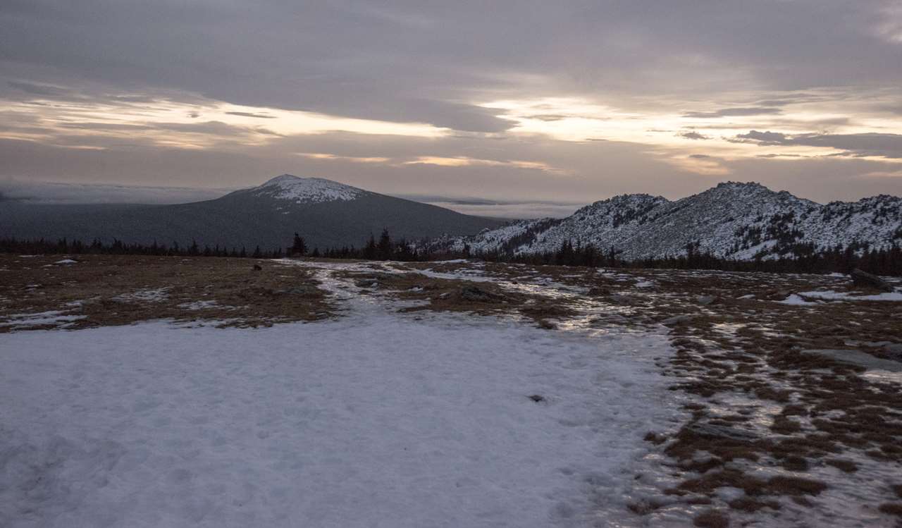Утром уходя со станции, легко спустился до развилки на Киалимский кордон, несмотря на ледяной дождь прошёлся до останцев Три брата, вернулся до развилки и зашагал в направлении усадьбы. Удивился тому, что в воскресенье на Таганае нет людей. Уже почти в темноте, весь вымокший, добрался до поворота на Монблан.