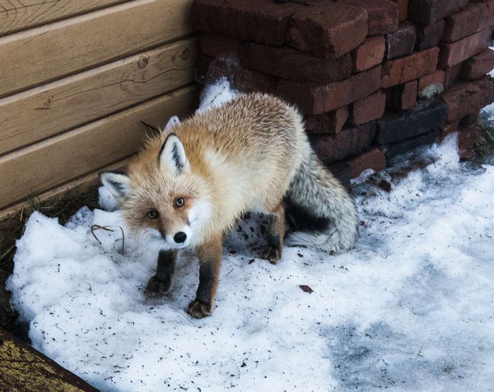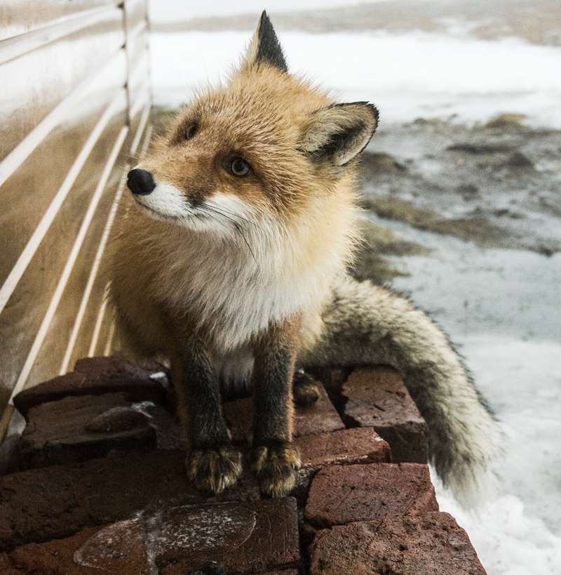 Разбудила группа туристов. Они на все лады склоняли погоду, ледяной подъём, говорили, что поверх обуви обязательно нужны «кошки». При слове «кошки» я вздрогнул. Вскоре сообщили, что пришла лиса, заглядывает на веранду, просит еду. Я выбежал на улицу, прихватив сало и камеру. Рыжую попрошайку уже кормили колбасой, бутербродами, кусками мяса и курицей.