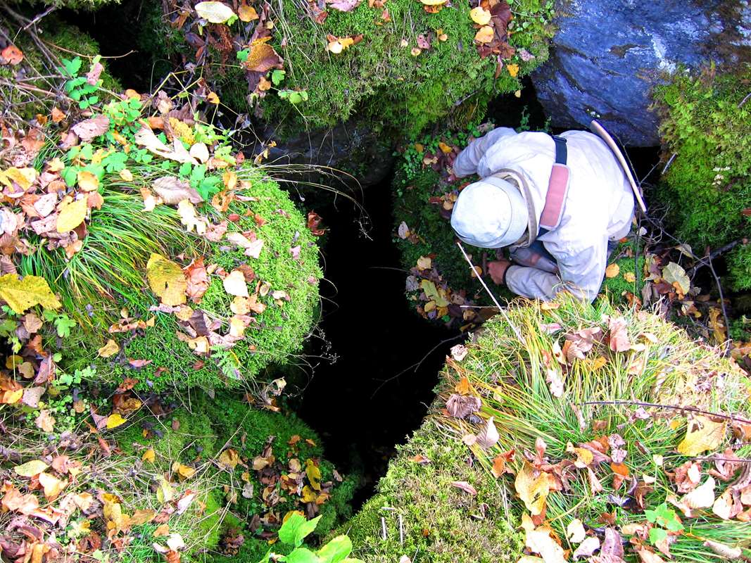 Мы продвигались вглубь ущелья, минуя пещеру Зигановка, притаившуюся на склоне горы в лесной чаще. С обеих сторон тропы склонились зелёные ели, под кронами которых мы обнаружили несметное количество грибов, причём ценных пород: белых и рыжиков.