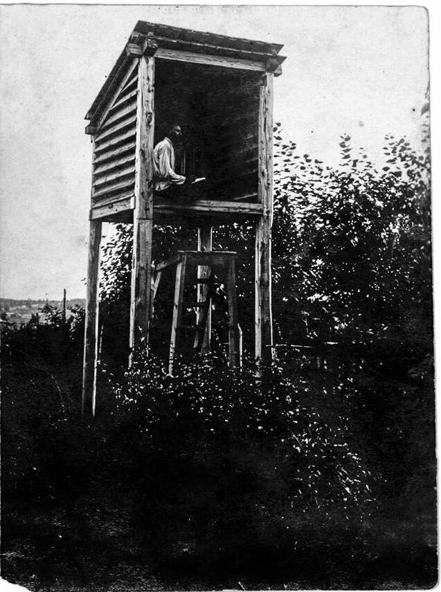 Согласно упомянутой инструкции, приборы для определения температуры и влажности воздуха устанавливались в так называемой «николаевской будке» на высоте три метра. Следовательно, чтобы снять показания приборов, нужно было подняться на трехметровую высоту по наружной лестнице и забраться в тесную будку!